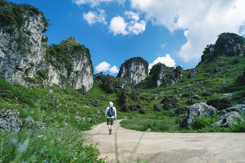 ① 今天的徒步路程约16公里,累计爬升约为600米,以喀斯特地形地貌为主,需要走一段乡道和爬坡以及穿越蕨类灌木丛。