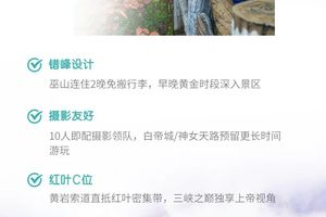 2. 由于此产品游览区域属于巫山、奉节,经济发展缓慢,物资匮乏,旅游资源条件有限,无法与一二线城市旅游资源比较,如遇相关问题敬请谅解