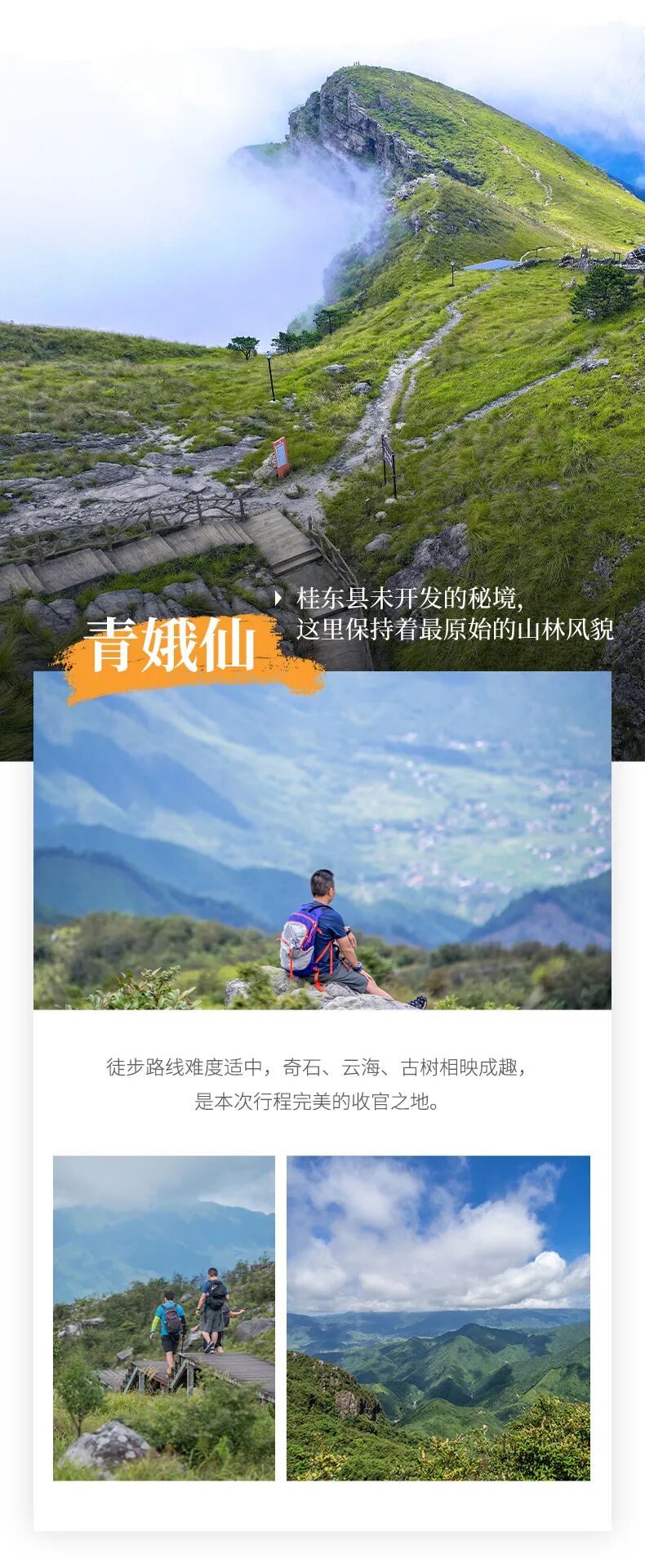 酒店早餐后出发(车程1.5小时至登山口)八面山徒步挑战(往返约9公里)我们将拾阶而上,沿路溪流,瀑布,森林,高山草原感受海拔上升不同的植被变化。顶峰可360°观三省风光,云海季更壮观(如遇八面山森林防火期不对外开放,我们将根据情况改走齐云山,风景和徒步强度同八面山一样)徒步结束后集合前往桂东县城(车程2小时)。