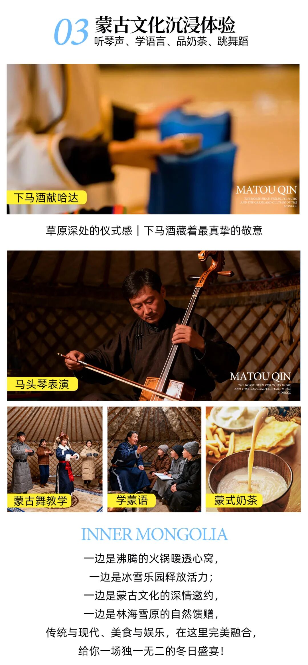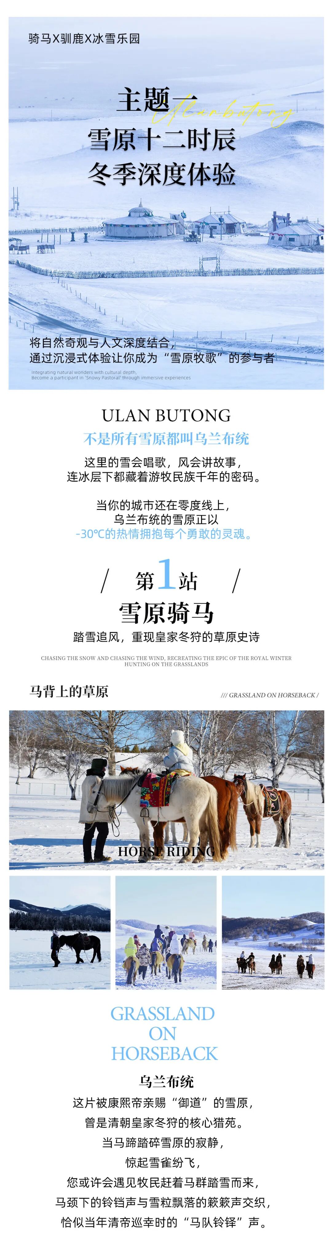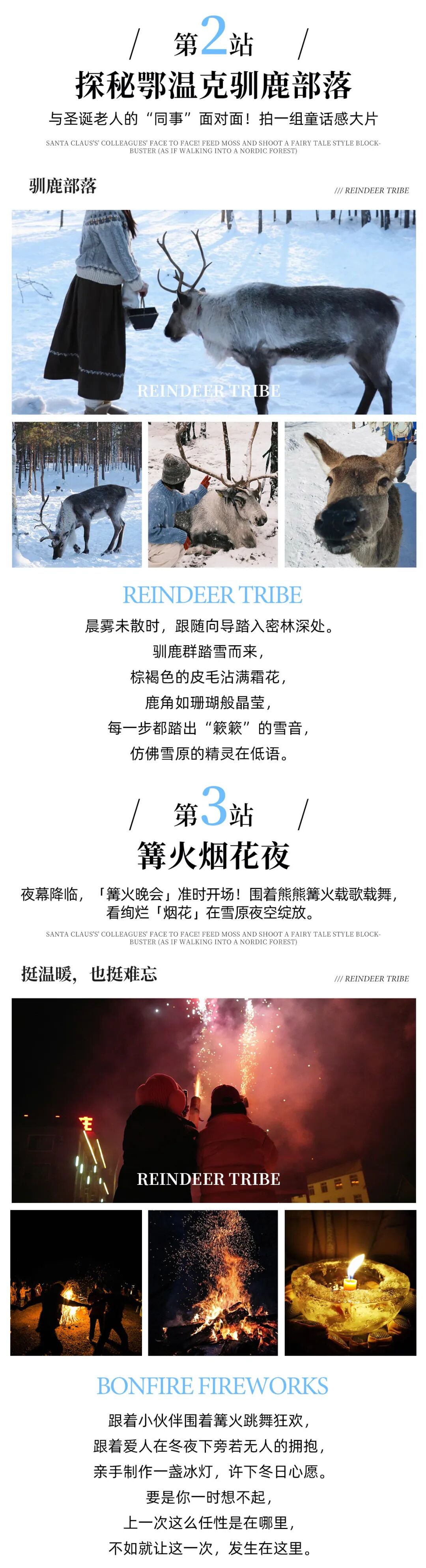 🚐乘车前往乌兰布统雪原|探秘雪原秘境鄂温克驯鹿部落+骑马踏雪|晚餐品尝雪原特色谈烤全羊|雪原篝火+烟花星空夜