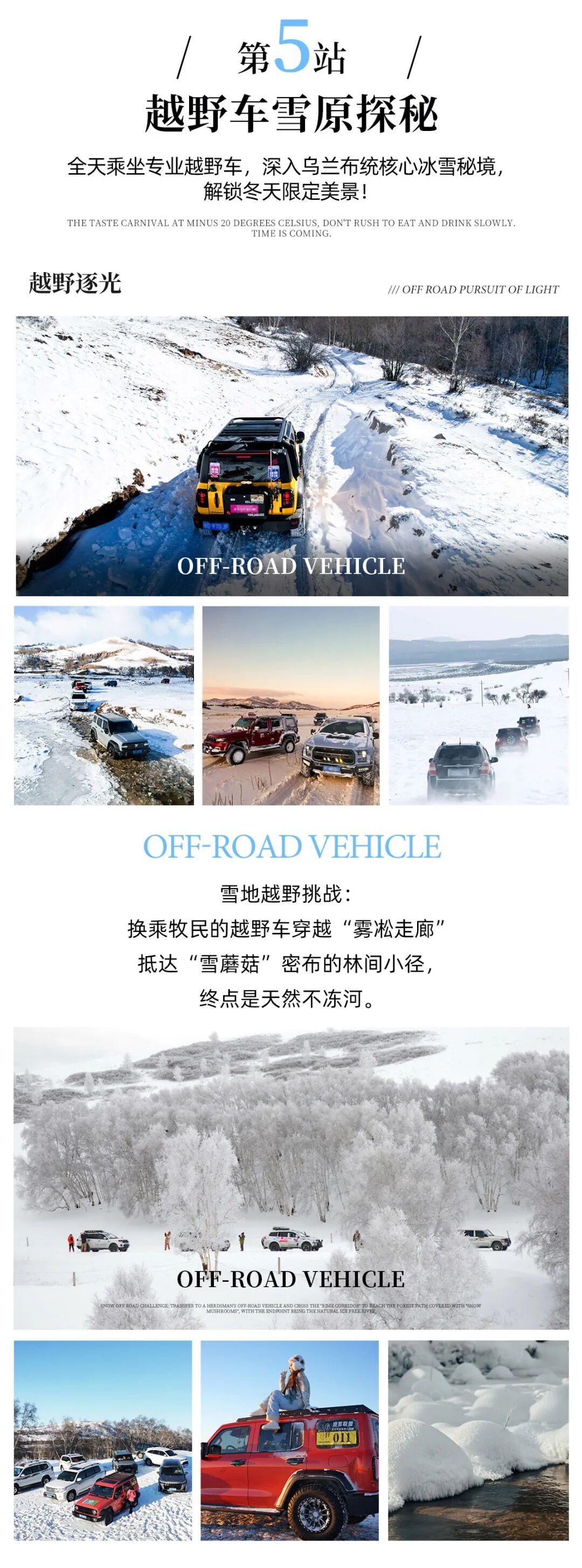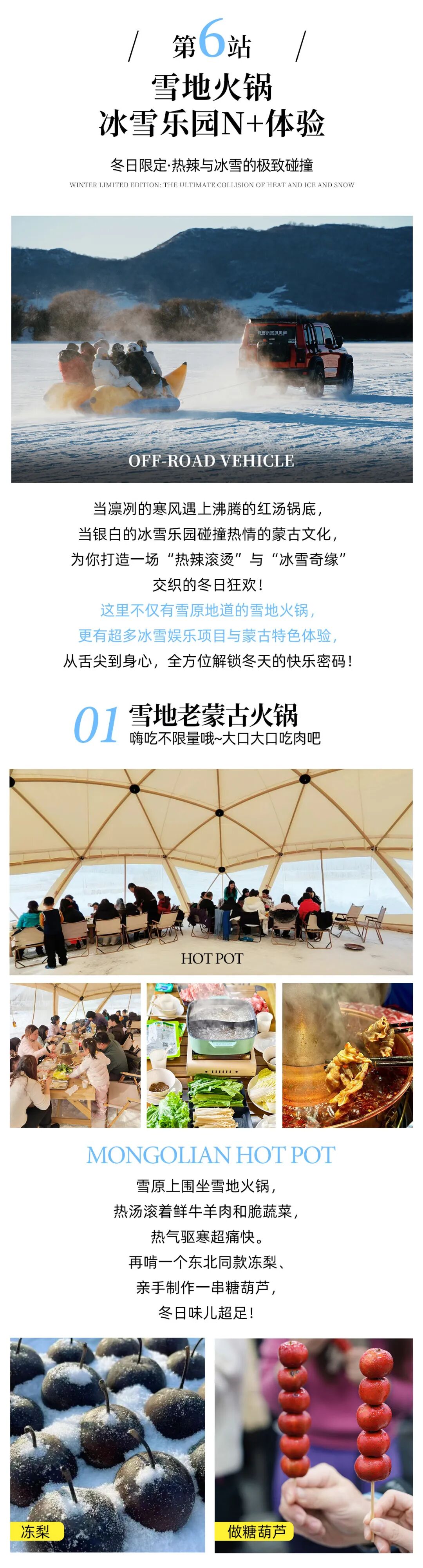 🚙换乘牧民越野车探寻雪原魔界❄️雾凇冰挂雪馒头不冻河|🍲雪地火锅+冰雪乐园+🌄空中雪原日落