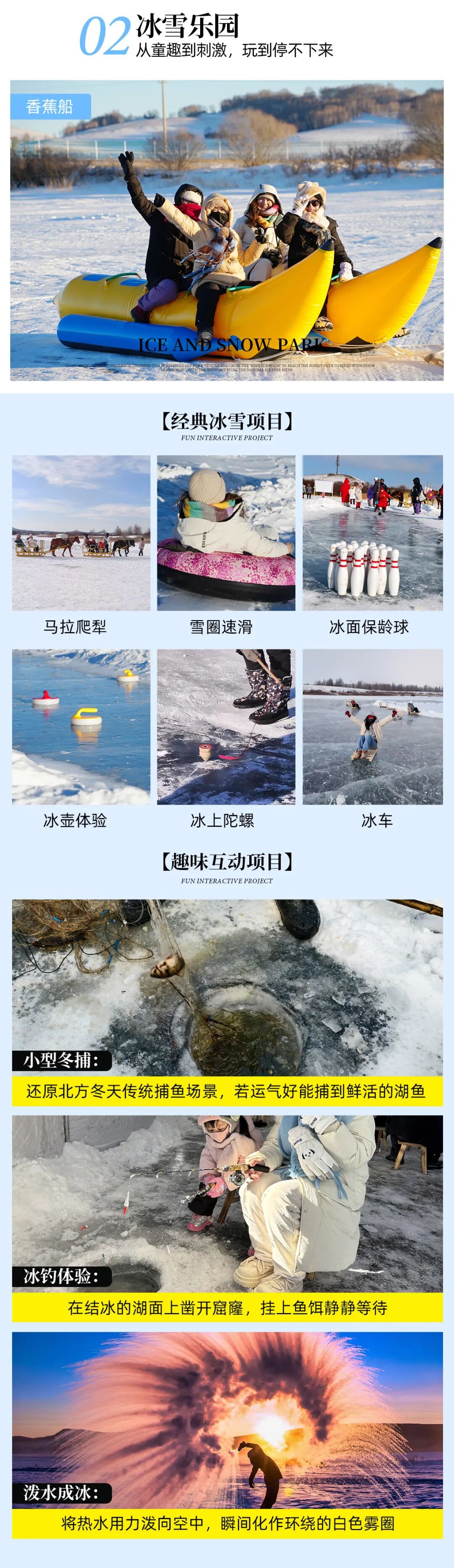 午餐后,前往红松湖冰雪乐园体验北方孩子的冬日小确幸。后前往空中雪原点亮唯美雪原日落。
